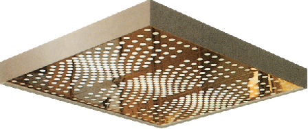 Mirror stainless steel hollow plate and white organic plate are collocated with stainless steel framework.