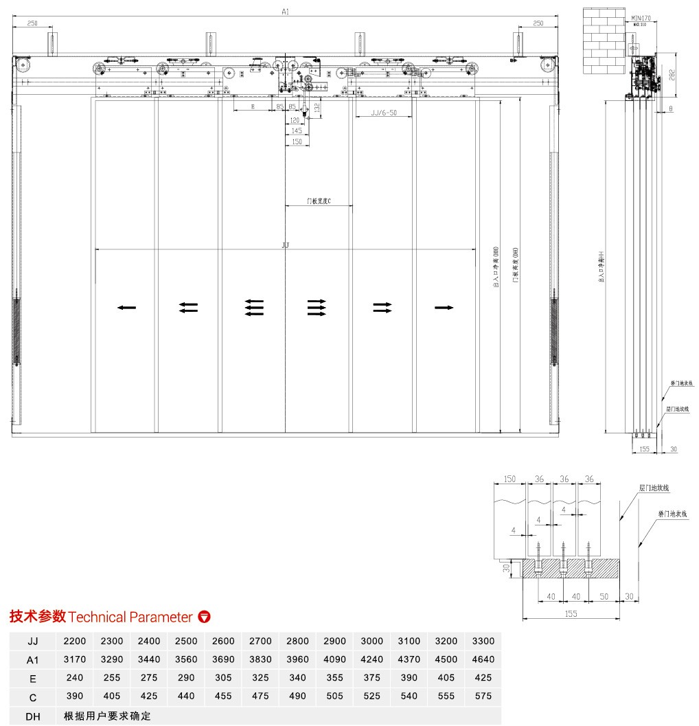 XEK-9052中分三折层门上坎
