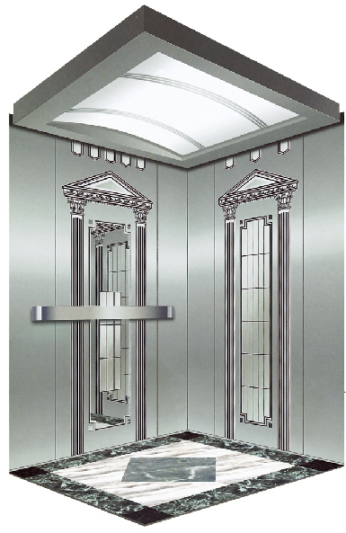 轿厢壁:镜面不锈钢镜面蚀刻,发纹不锈钢组合