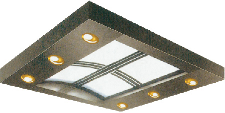 在钢板喷涂底板上辅以金色筒灯与桥壁辉映,中间部分是拱形白色有机透光板的柔光照明设计。