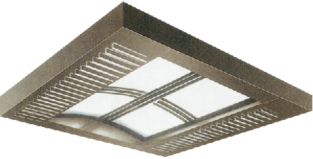 在钢板喷涂底板上辅以长方形中空透明灯柱,中间部分是拱形白色有机透光版的柔光照明设计。