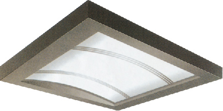 中部是影像拱顶,两侧为不锈钢底板上铺以筒灯的柔光照明设计。