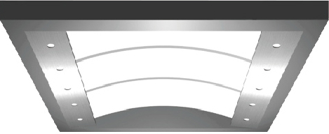 中部是影像拱顶,两侧为不绣钢底板上铺以筒灯的柔光照明设计。